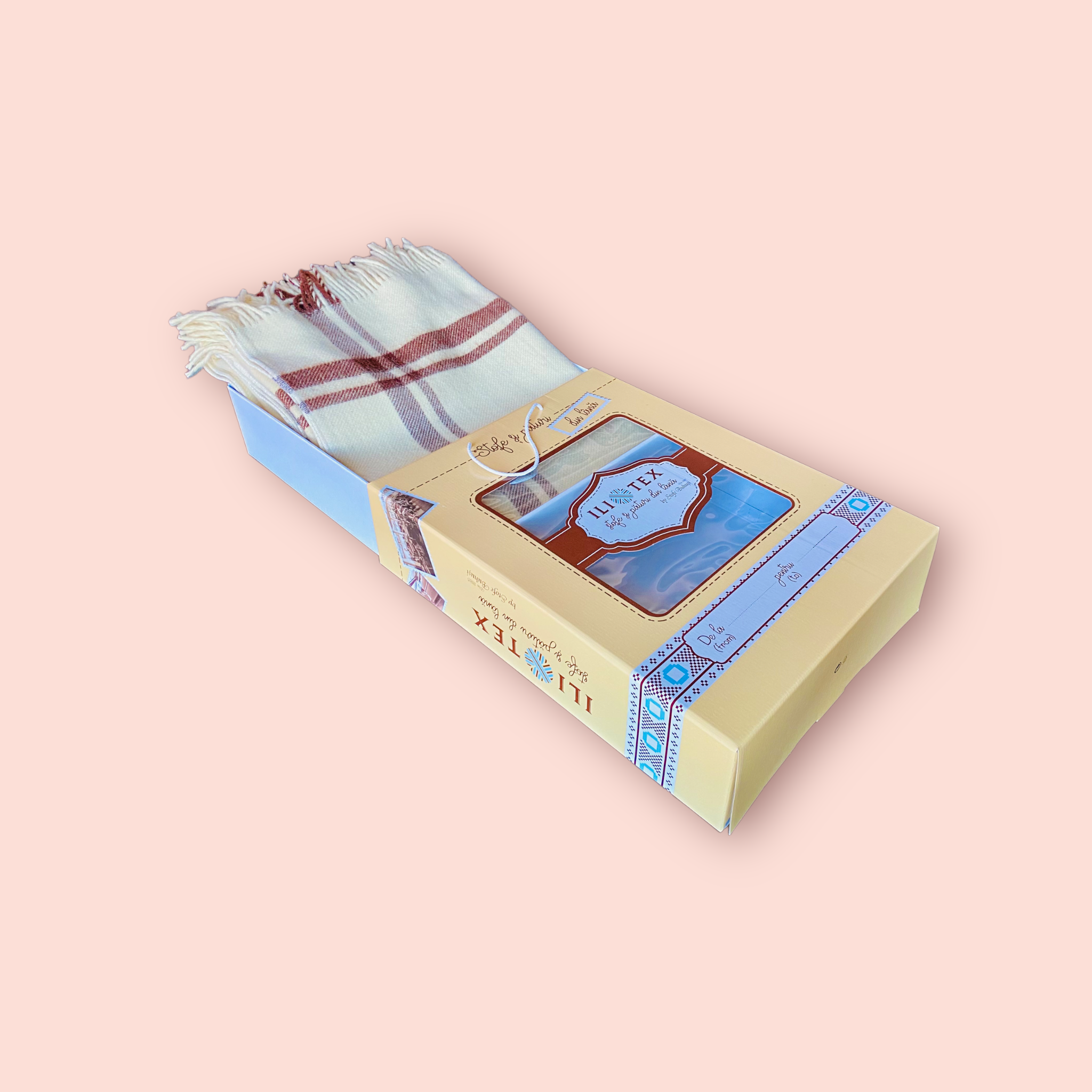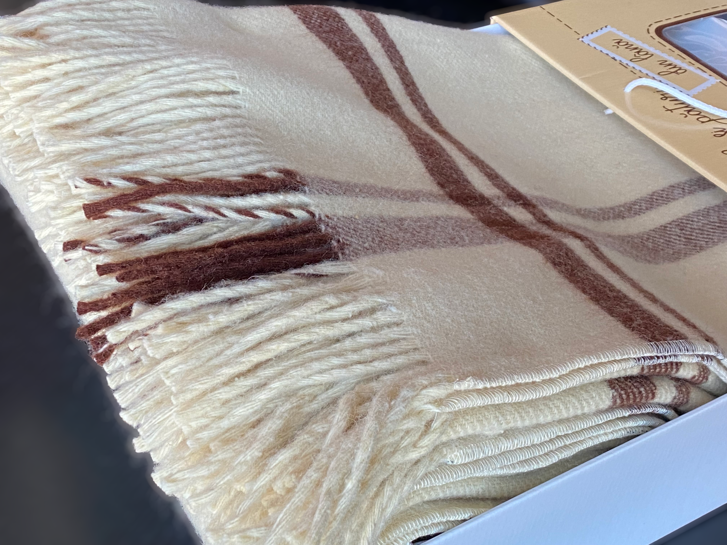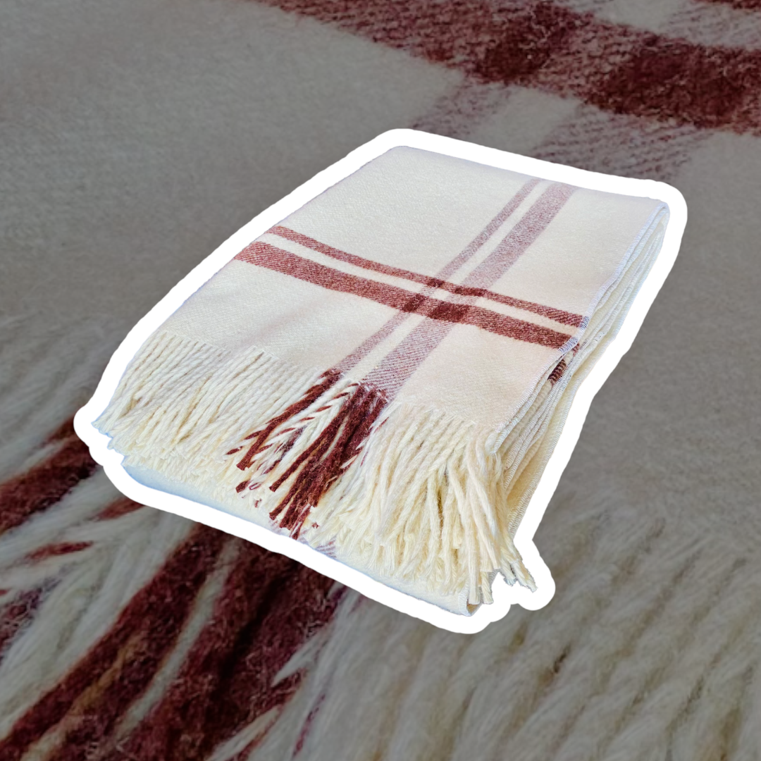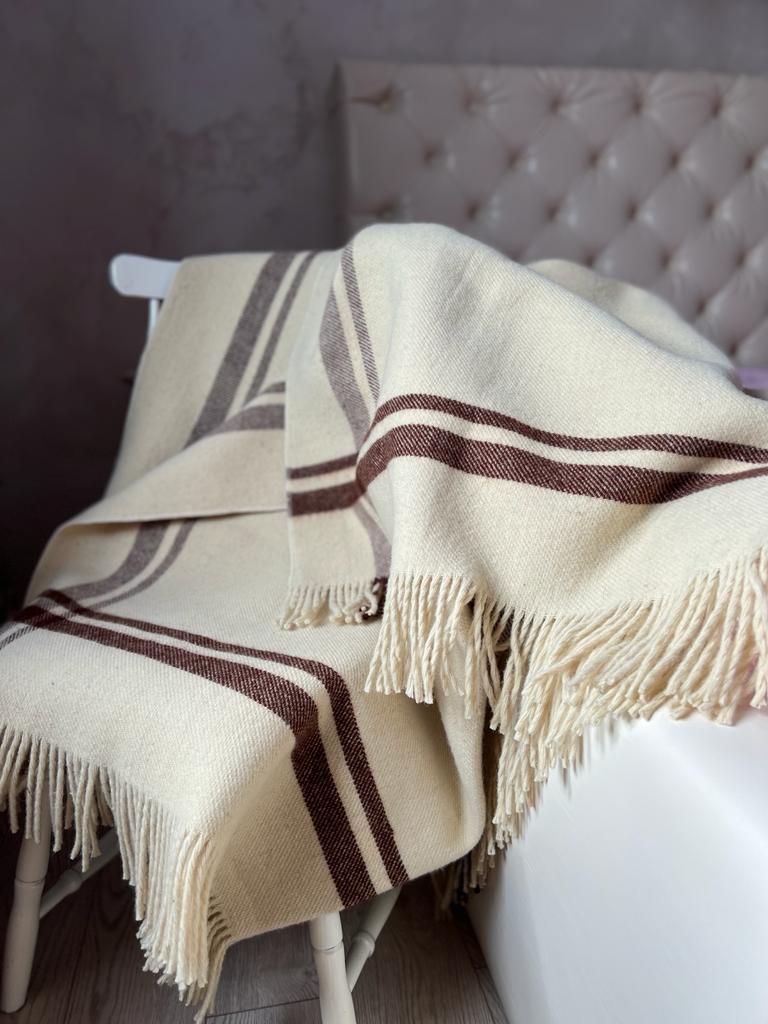 5. Pătură din lână merinos, model Natur cu franjuri, 150X230cm, alb/crem, cutie premium