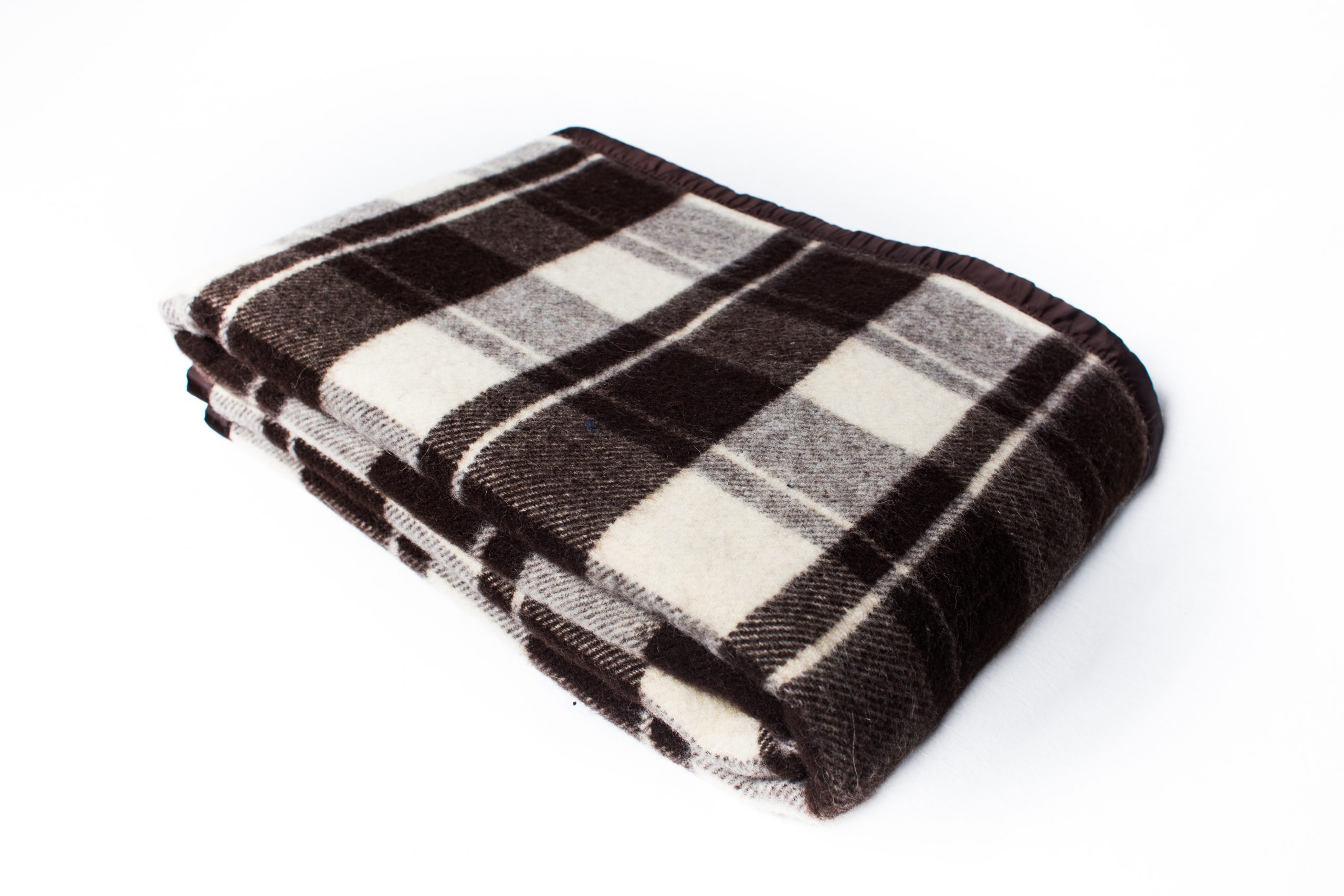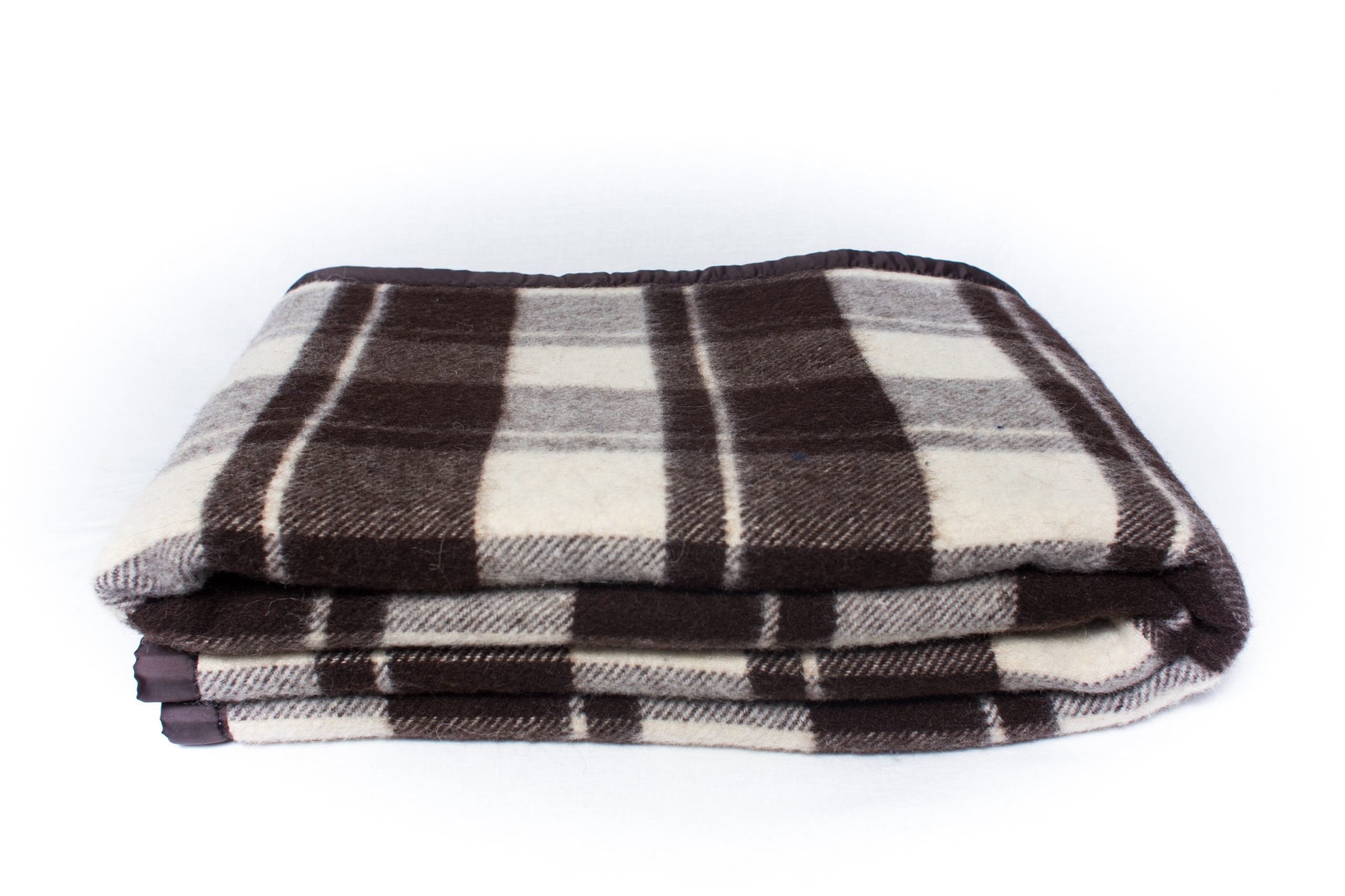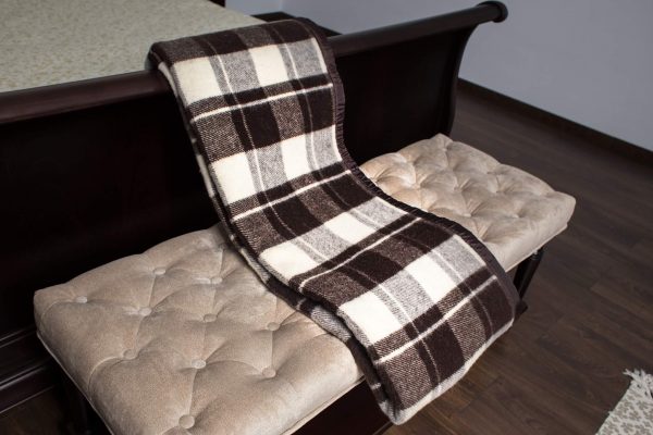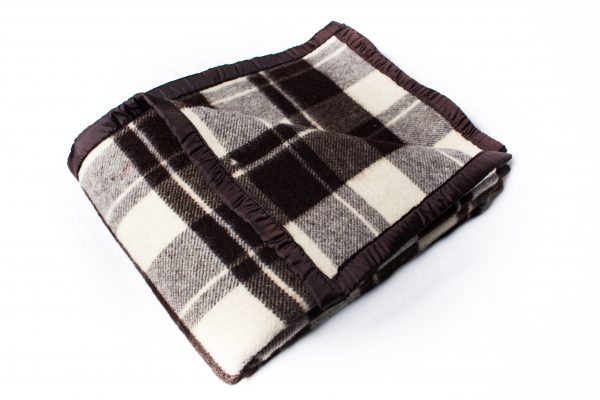 5. Patură lână românească, model Andreea, 150x200cm, 707 gr/mp, maro – bej natur, cutie premium
