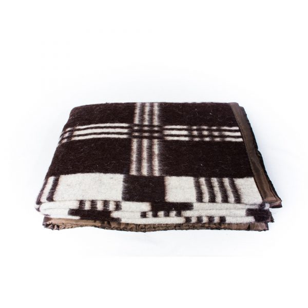 5. Patură tradițională, 50% lână românească, 1,8 kg, maro/alb, cutie premium